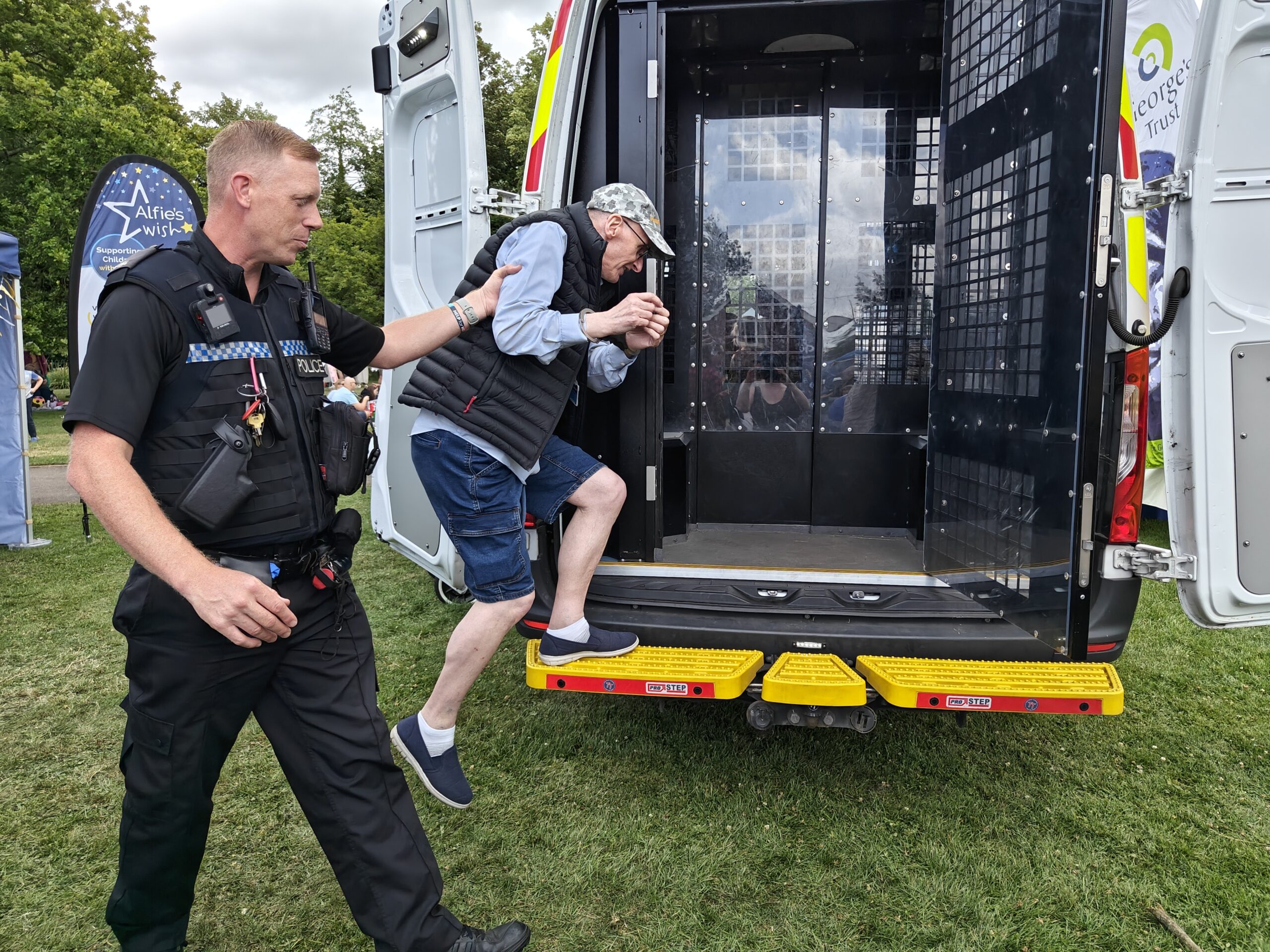 The live broadcast began at 11am with the first hour of “The Music Man” Mike Joyce’s Penny Farthing Music Show, in which he played some well-loved classics from yesteryear, and to which people dotted all around the park could be heard singing along. Though this went down very well, Mike disappeared shortly after his show only to later be found locked away in the back of the Hampshire Constabulary Police van… possibly something to do with his terrible jokes!?! 😛