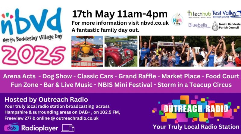 Join Outreach Radio at the North Baddesley Village Day 2025 on Saturday 17th May from 11am to 4pm. Join us for the much-anticipated North Baddesley Village Day celebration, and partake in entertainment, food and drinks, and boundless fun for the whole family. Fun Zone: A selection of rides and activities perfect for the little ones […]